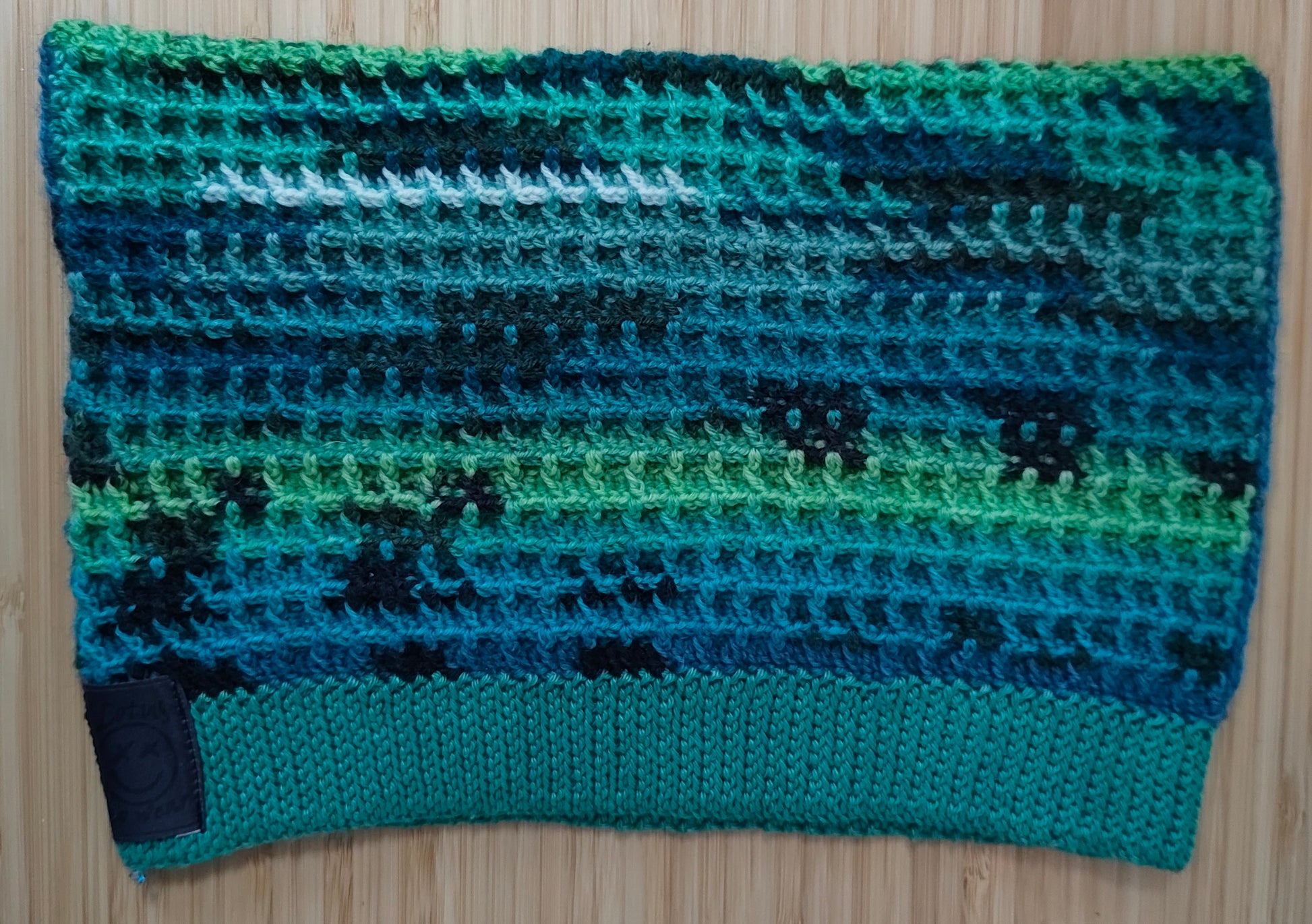 Diese Mütze häkel ich aus feiner Sockenwolle (75% Schurwolle, 25% Polyamid) in einem Waffelmuster. Das Bündchen ist seperat angehäkelt und besteht aus 100% Baumwolle.